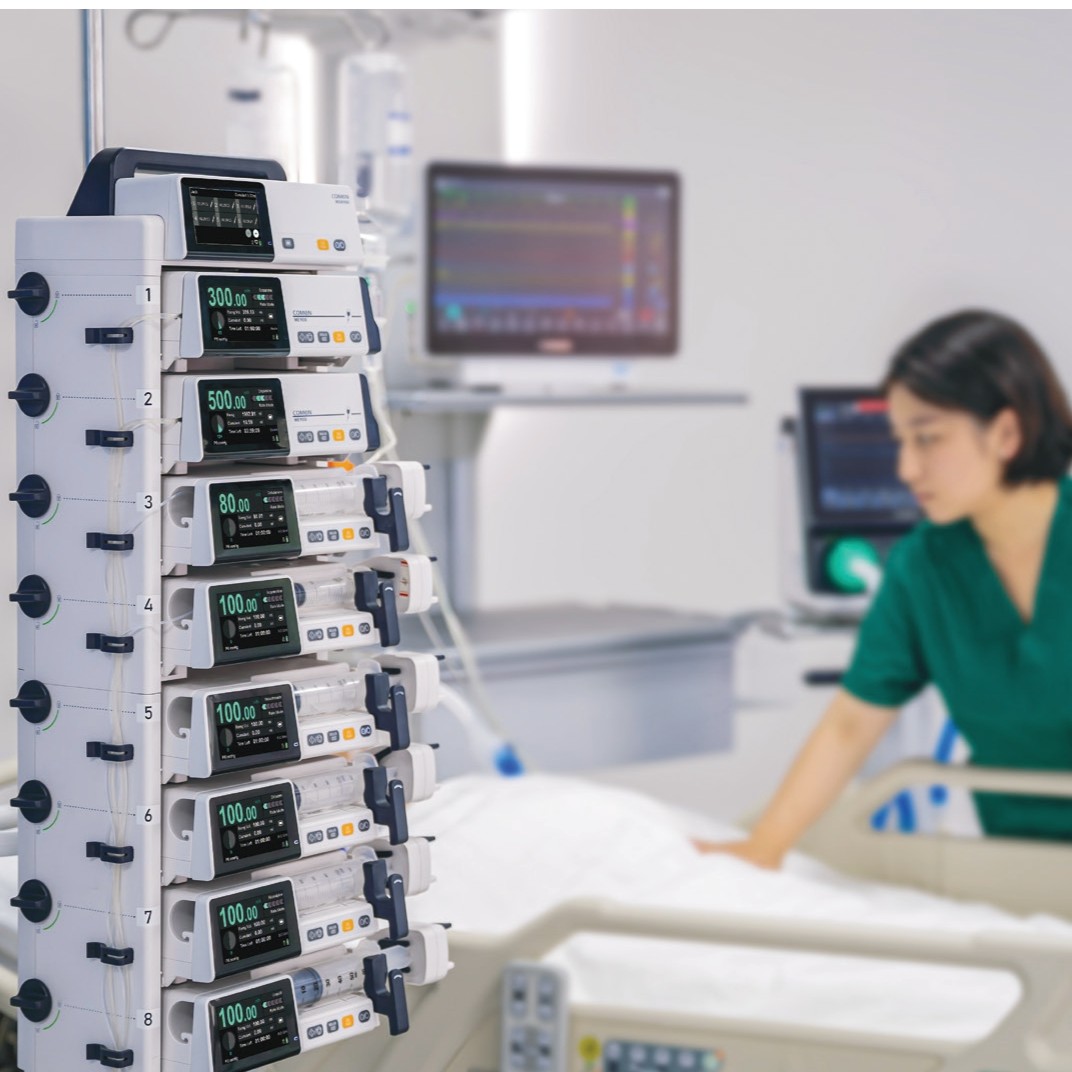 Featuring the Dynamic Pressure System (DPS) with multi-color visual pressure indication, real-time occlusion warning, anti-bolus protection, and continuous titration adjustments, the system significantly reduces medication errors and enhances patient safety. With a capacity of 5000+ drug library entries, DERS (Dose Error Reduction System), infusion curve review, and intuitive 3.5″ touchscreen interface, caregivers receive deep visibility into infusion performance and history.